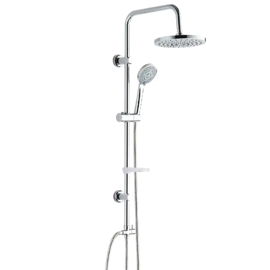 Damast-Duschsäule, Serie Tonda 332, Stange mit Duschkopf und ABS-Handbrause + Seifenschale und flexiblem Schlauch, Farbe Chrom,