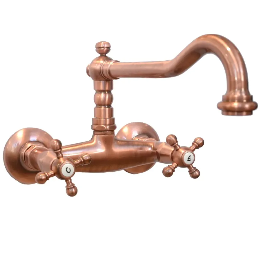 Porta&Bini 2-lever tap Sink series Old Fashion wall mounted high spout copper color 62551RA