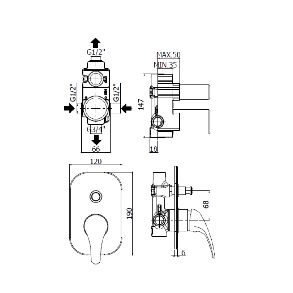 Paffoni Built-in shower mixer Pegaso series with diverter chrome color PE015CR
