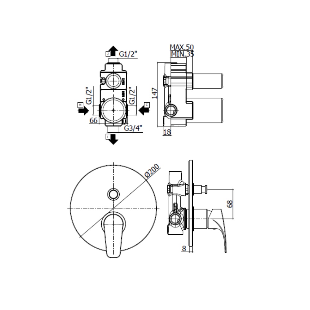 Paffoni Built-in shower mixer Lime series with diverter chrome color LM015CR