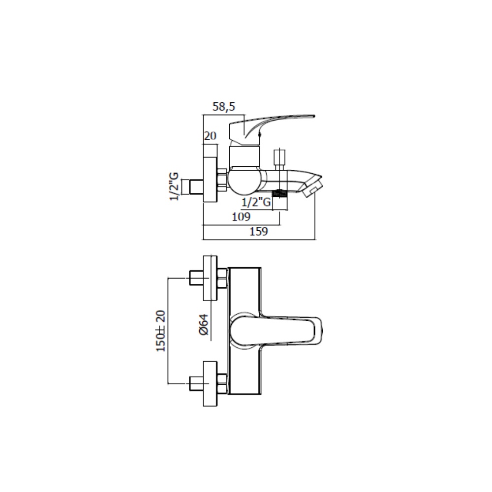 Paffoni Duplex Bath Mixer Lime Series with Fixed Support and Hand Shower Chrome Color LM026CR