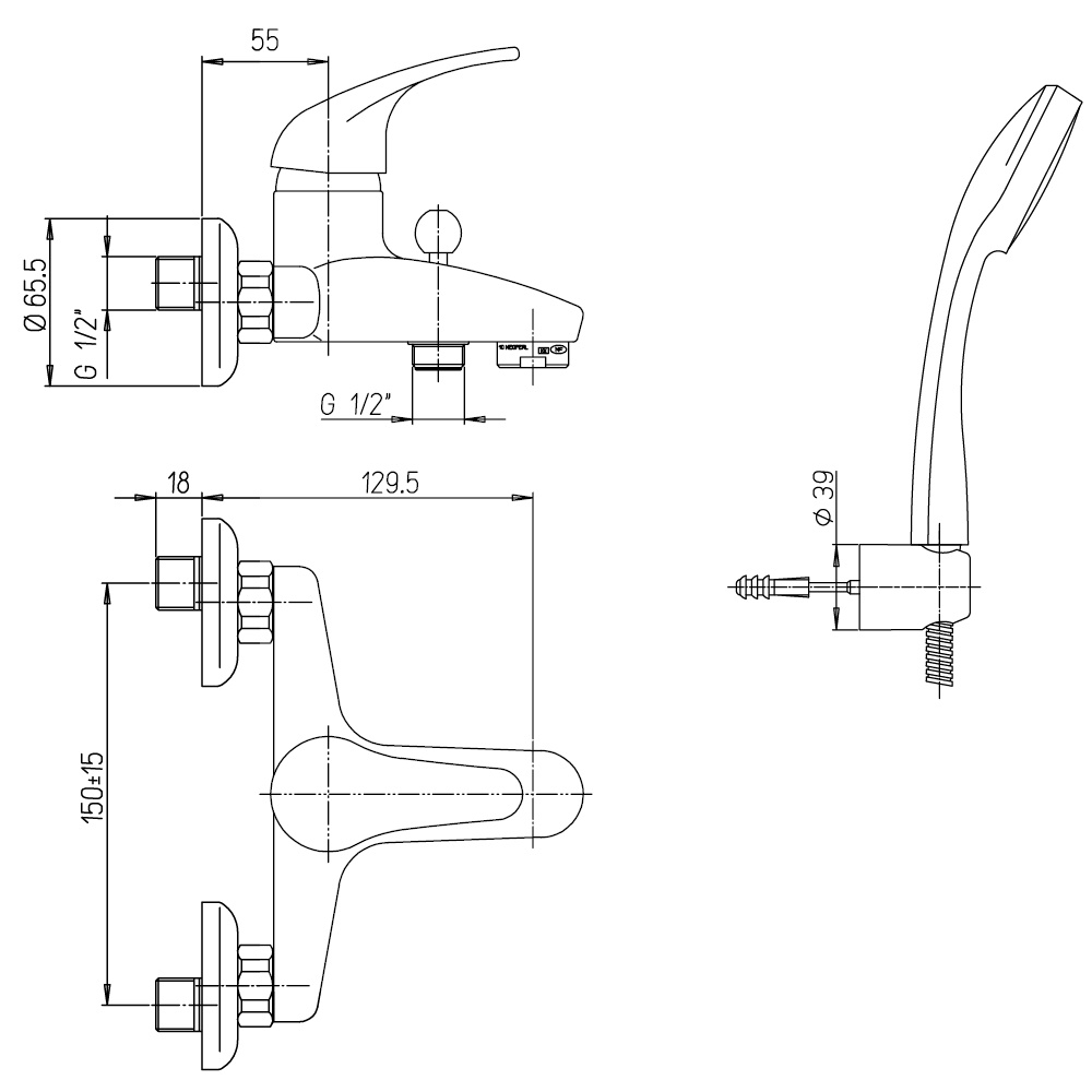 Argo Duplex Bathtub Mixer Joker Series with Fixed Support and Single Jet Hand Shower Chrome Color JK J510 No Caravan