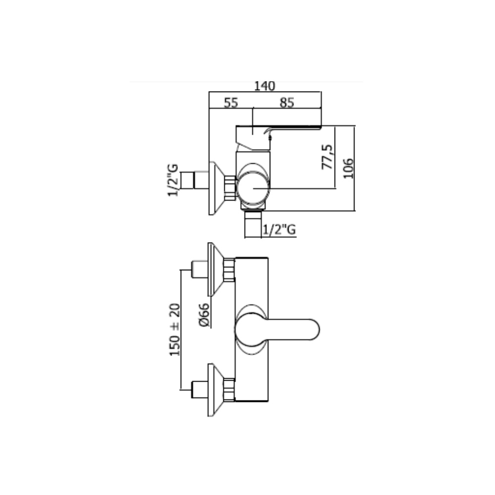 Paffoni Duplex Shower Mixer Blu series with fixed support and chrome-coloured hand shower BLU168DCR