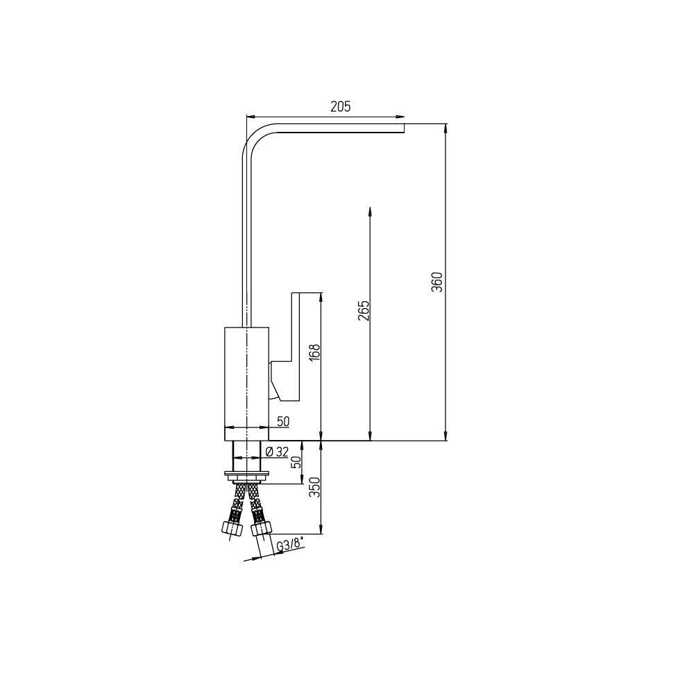 Argo Mixer Tap High Spout Sink Bergamo Series Square with Rectangular Spout Chrome Color 2950/01 No Caravan