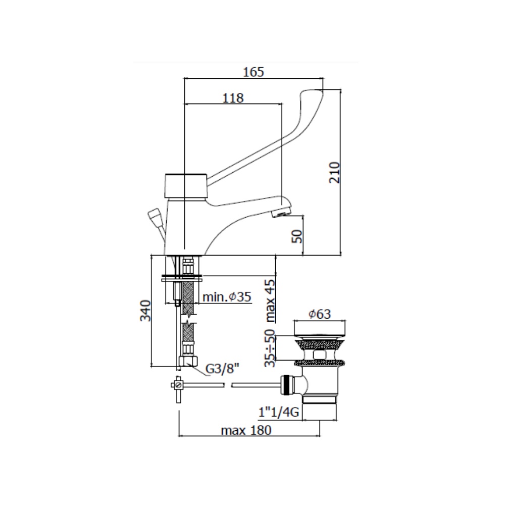 Paffoni Single lever basin mixer Pegaso series with Clinica lever and 1" 1/4 automatic waste chrome color PE305CR