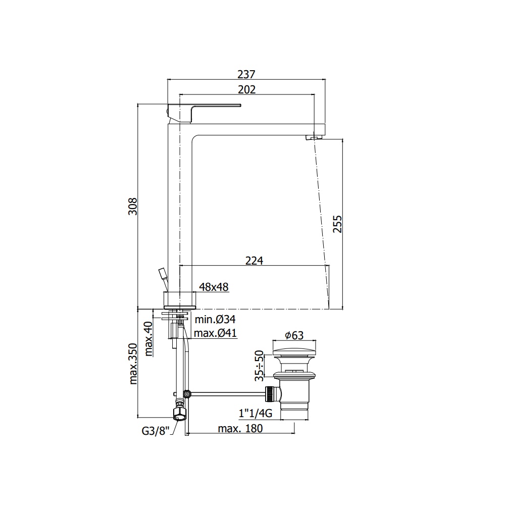 Paffoni High Sink Mixer Tap Elle Series Extended with 1" 1/4 Clic Clac Waste Chrome Color EL081KCR