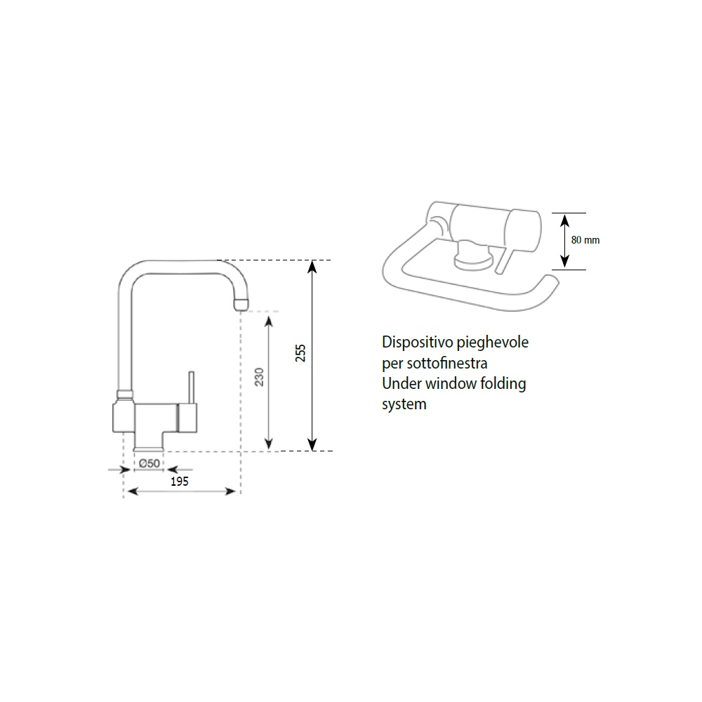 Argo Mixer Tap Under Window Sink Messina Series High Spout Angle Folding Tube Chrome Color 2451/01F