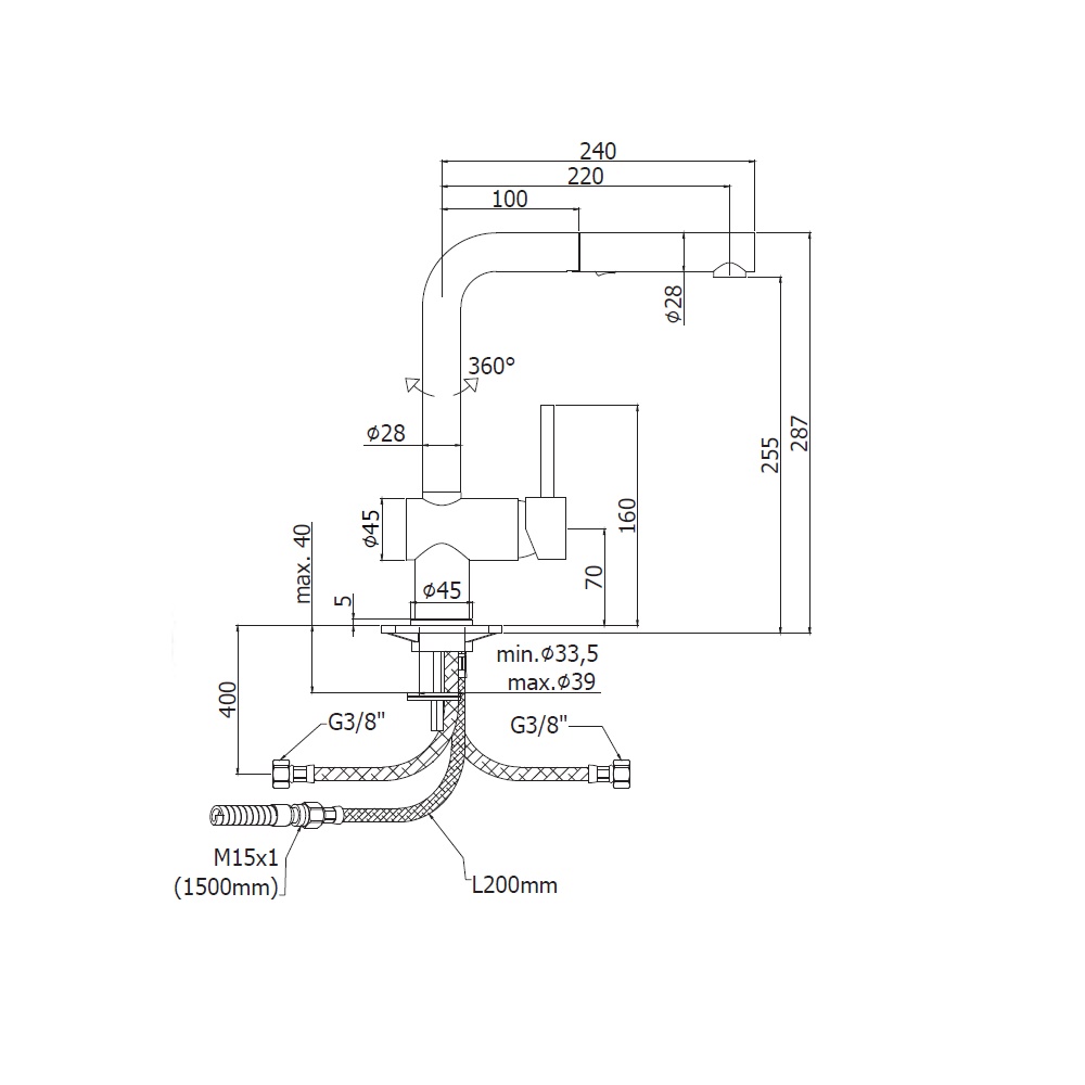 - flexible stainless steel M15x1