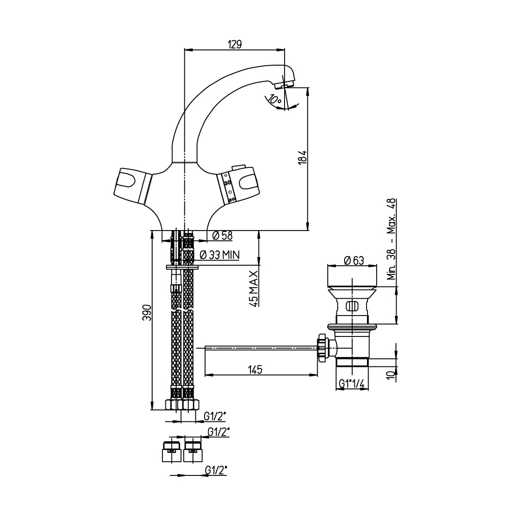 Argo Thermostatic Mixer Sink Chopper series with 1" 1/4 waste connection chrome color CP H100 No Caravan