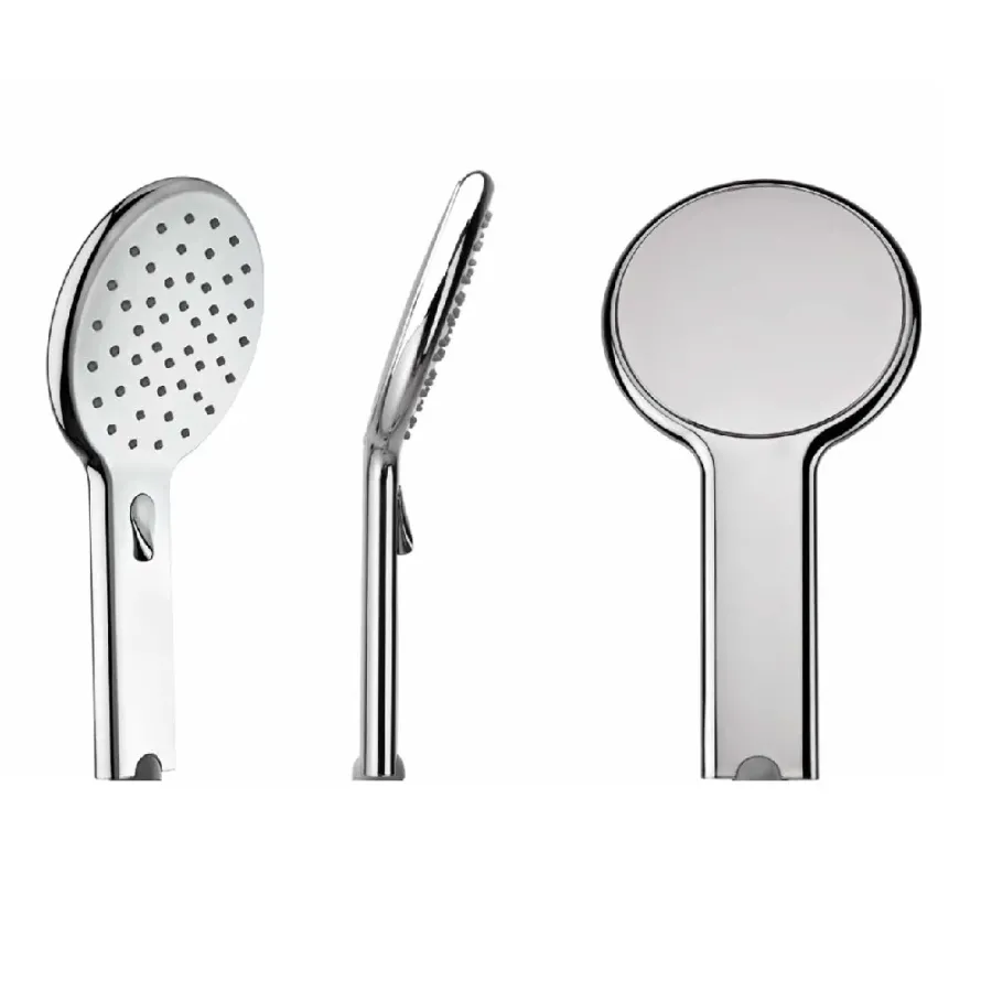 - Rociador de ducha de diseño superplano con difusor de 120 mm de diámetro, dotado de dispositivo de regulación del caudal de agua, mediante palanca que permite seleccionar un chorro de lluvia vigoroso o un chorro suave y delicado que reduce el consumo de agua hasta un 50%, garantizando a la vez el máximo confort.