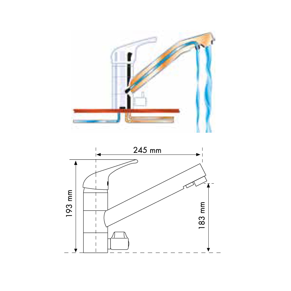 Argo Mitigeur 2 voies pour eau filtrée Évier série Vercelli Bec haut couleur chrome 2665/01E
