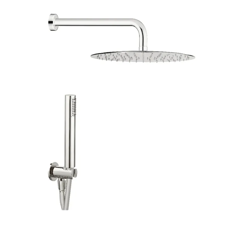 Ensemble de douche Damast Duplex série Rondo' en acier inoxydable avec douchette Atena + bras Pegaso 35 + pomme de douche chromé