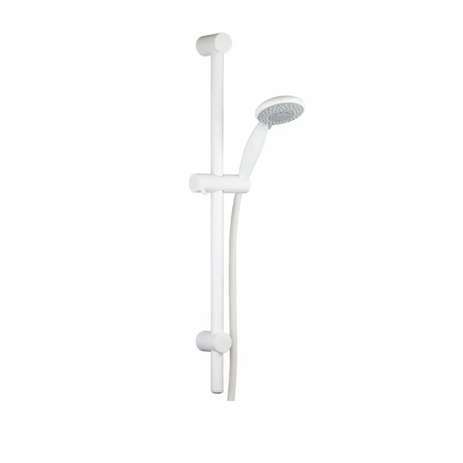 Barre de douche Damast série Renovo 2.0 en acier inoxydable avec douchette en ABS et flexible, couleur blanc mat, code. 15375