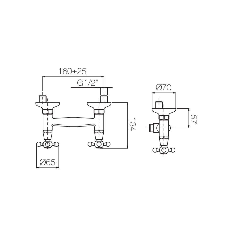 Porta&Bini Robinet de douche 2 leviers série Old Fashion duplex externe avec boutons rétro vintage couleur chrome 62541CR
