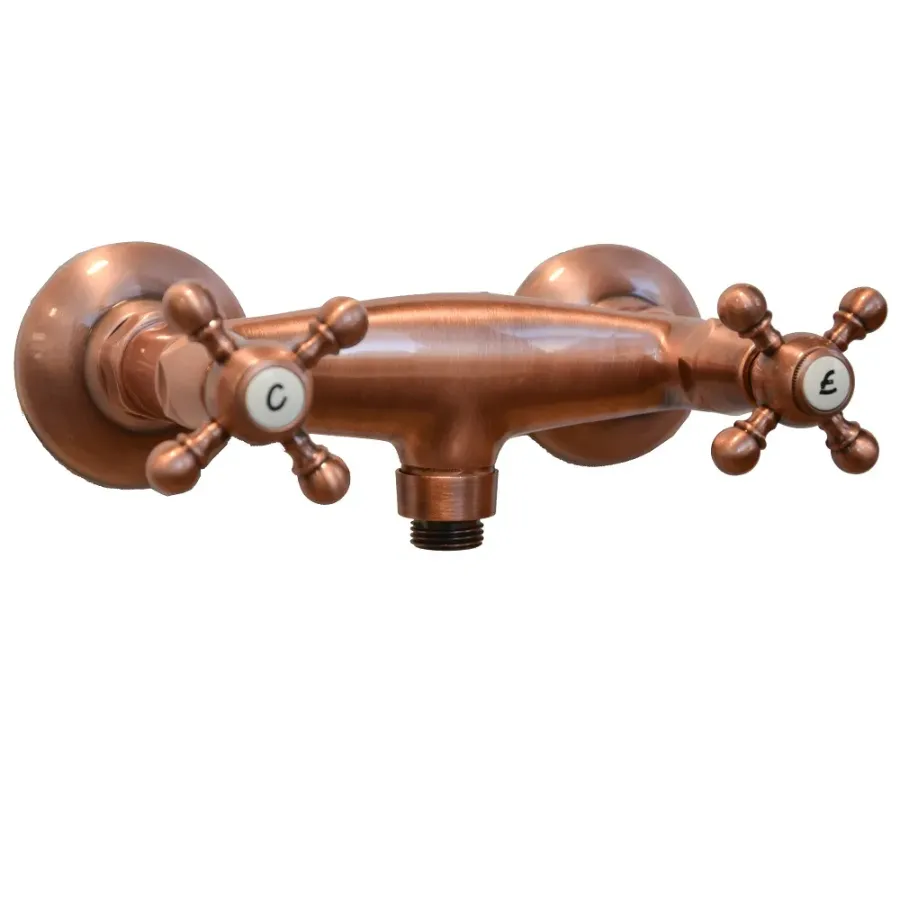 Porta&Bini Robinet de douche 2 leviers série Old Fashion duplex externe avec boutons rétro vintage couleur cuivre 62541RA