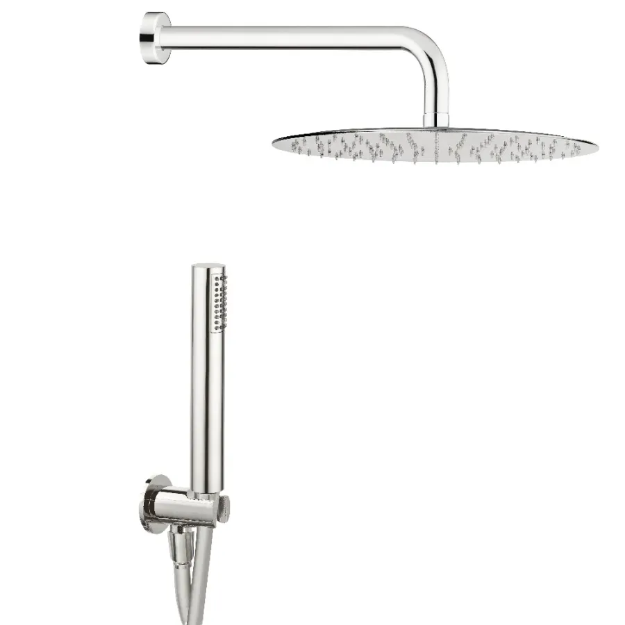 Damast Duplex Doucheset Rondo' serie in roestvrij staal met Atena handdouche + Pegaso 35 arm + Relax T chromen douchekop 13616